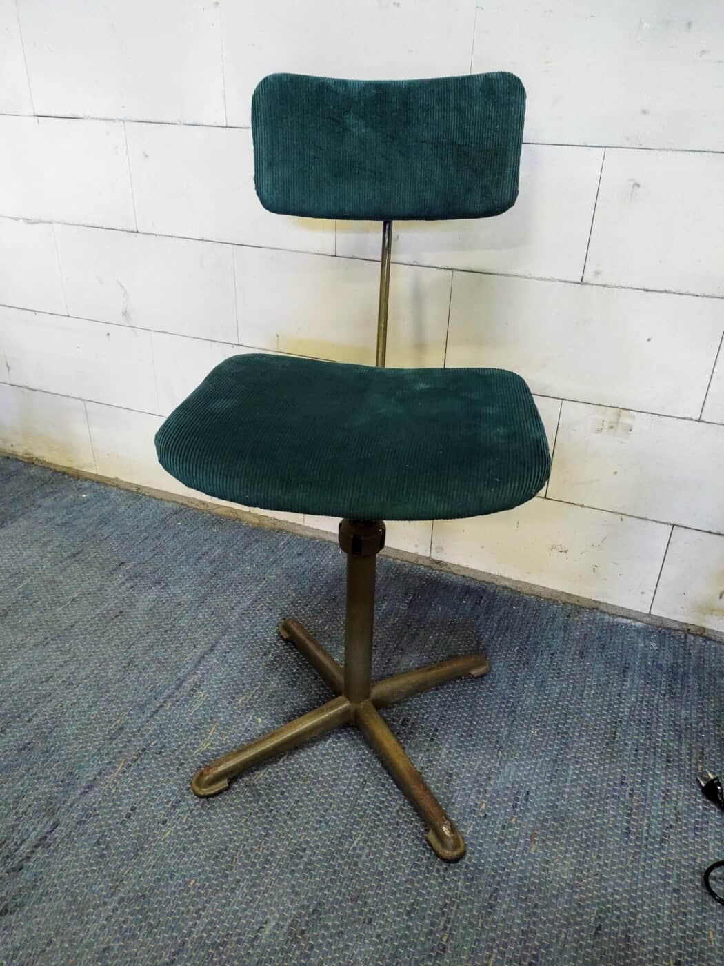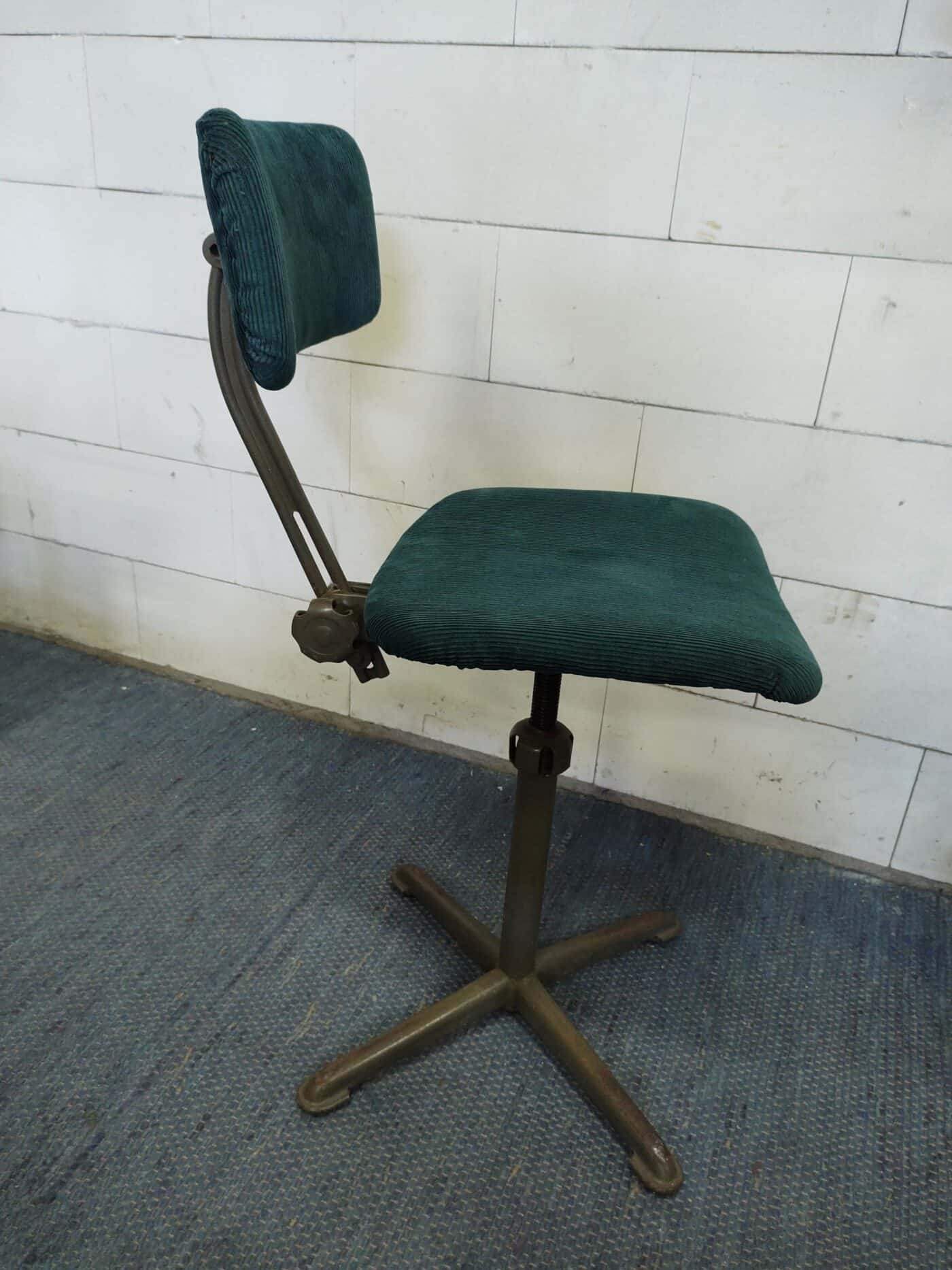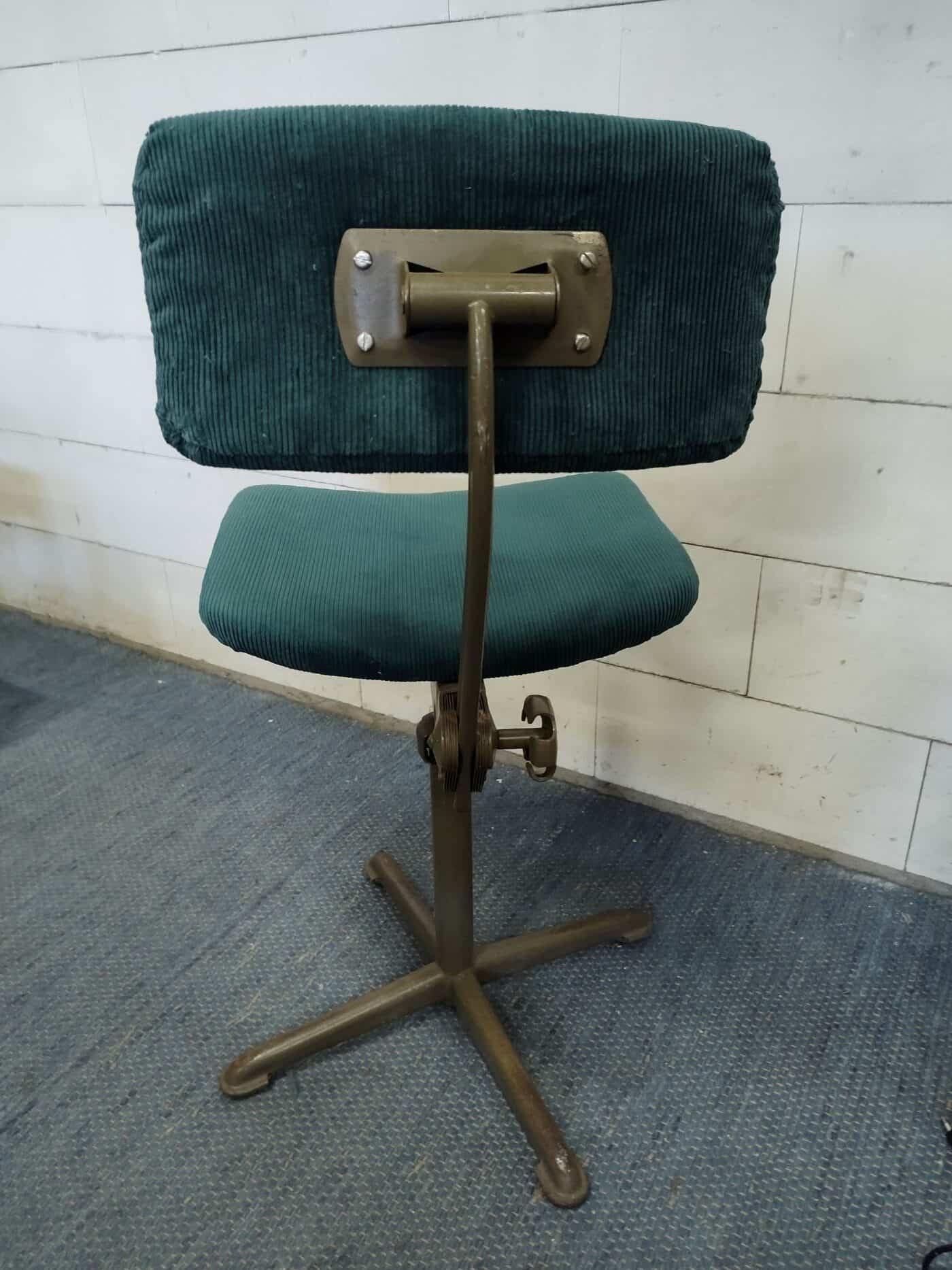 Authentieke bureaustoel van Ahrend de Cirkel uit de jaren 50. Ontwerp van Friso Kramer. Opnieuw bekleed met een groene ribstof die een volmaakte benadering is van de oorspronkelijke stoffering!