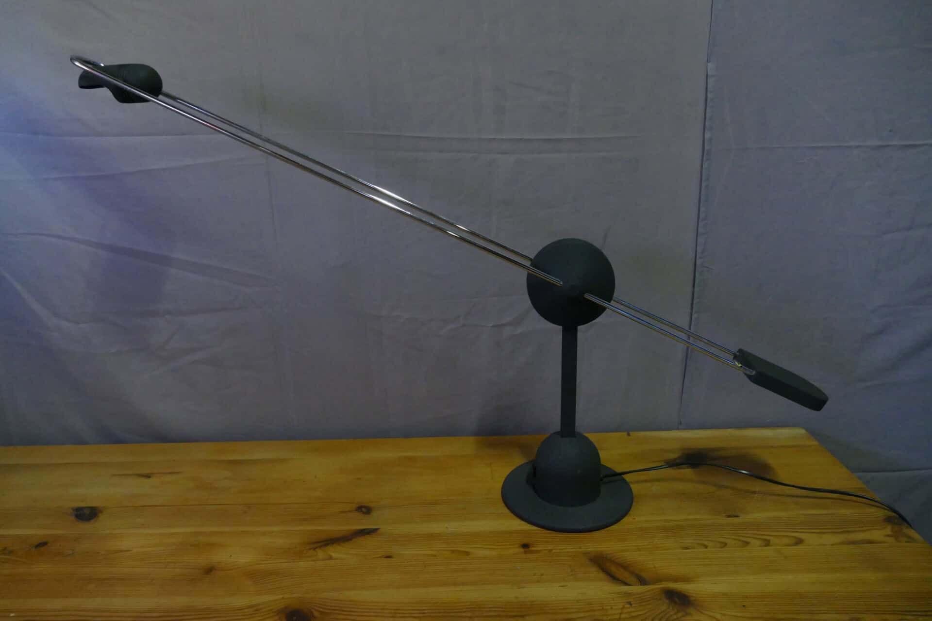 Zeldzame bureaulamp of tafellamp van Effetto Luce. Lengte van de arm 115 cm. breedte 8 cm. breedte van de voet 20 cm. Maximale hoogte 90 cm.