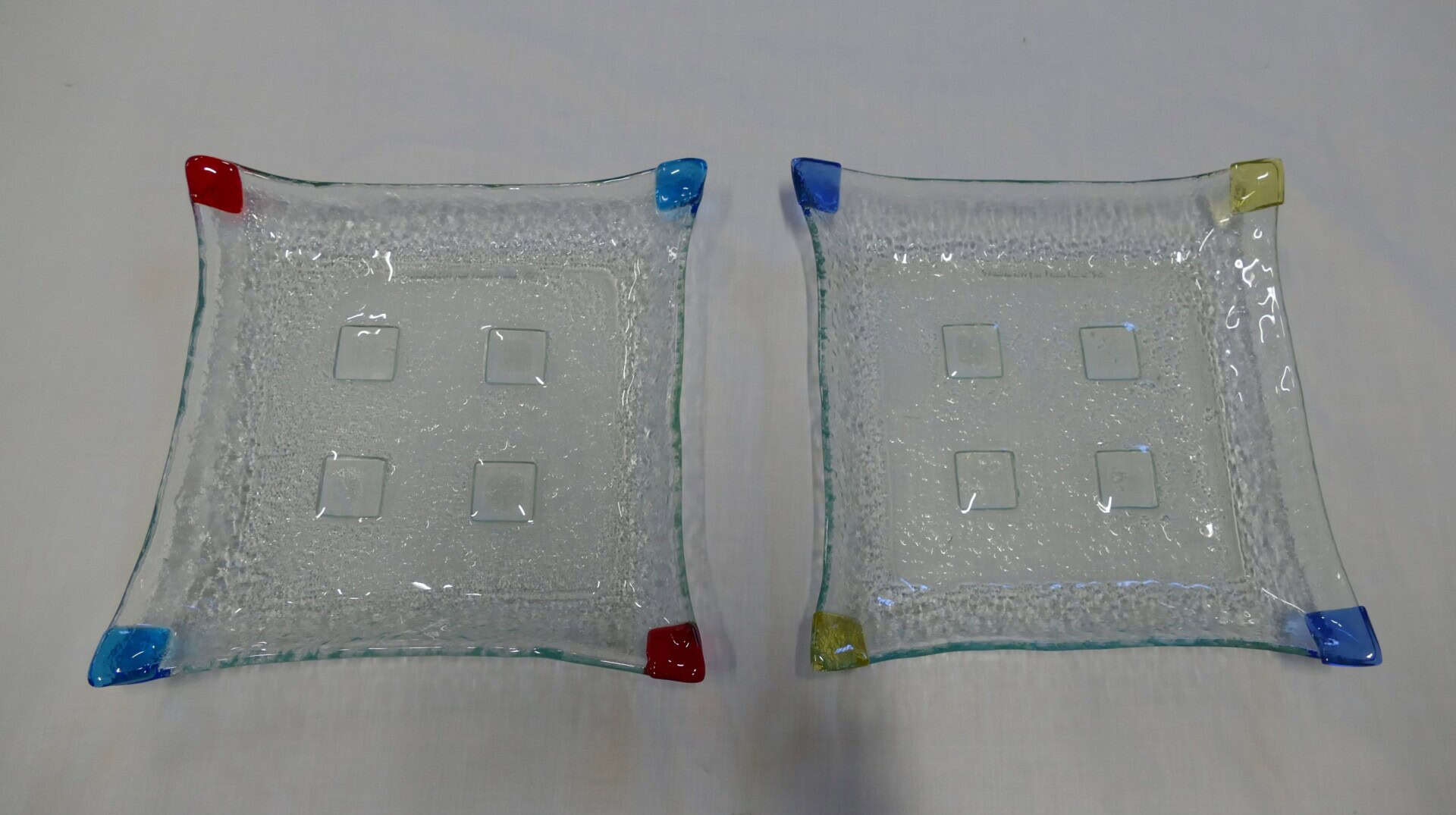 Set van twee glazen schaaltjes van Vittorio Livi voor FIAM Italia. In zeer goede staat! Afmetingen ca. 23 x 23 cm.