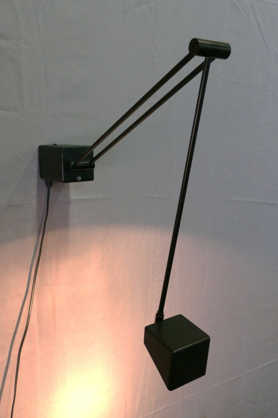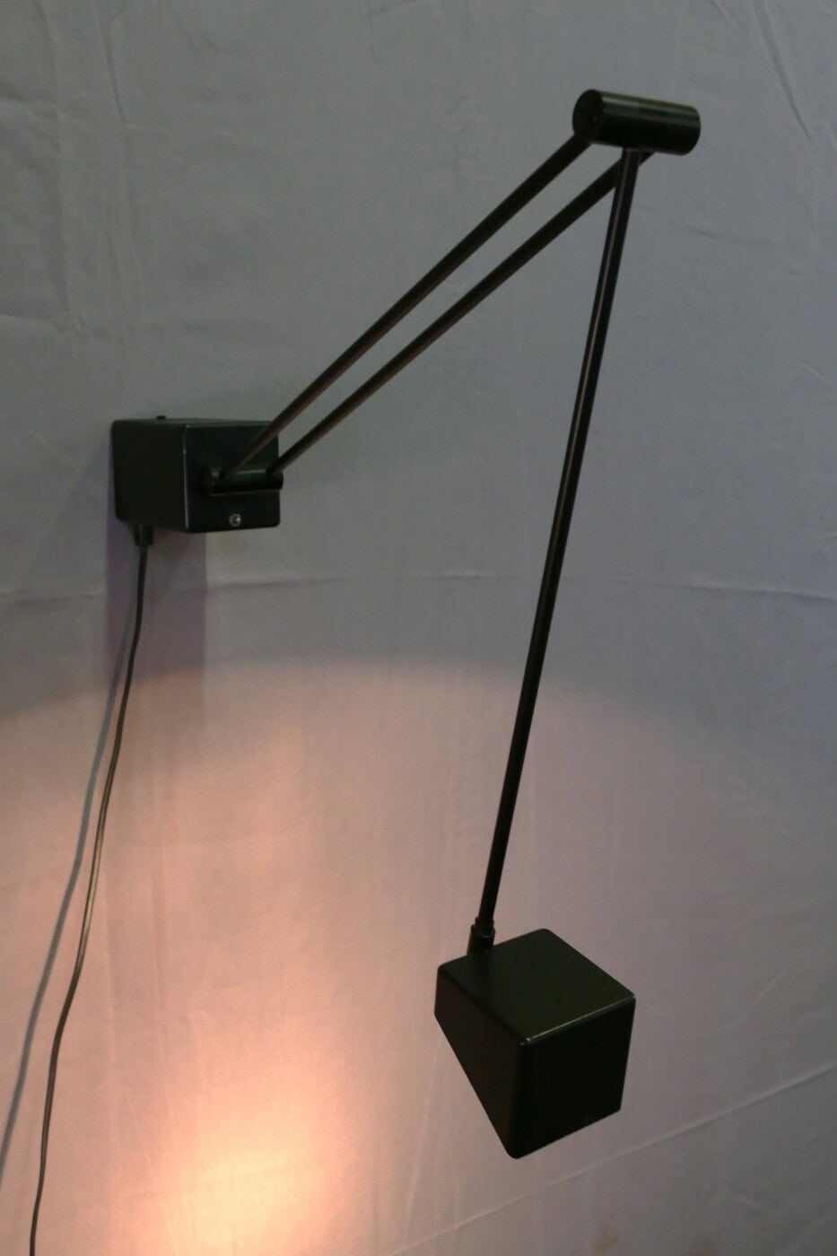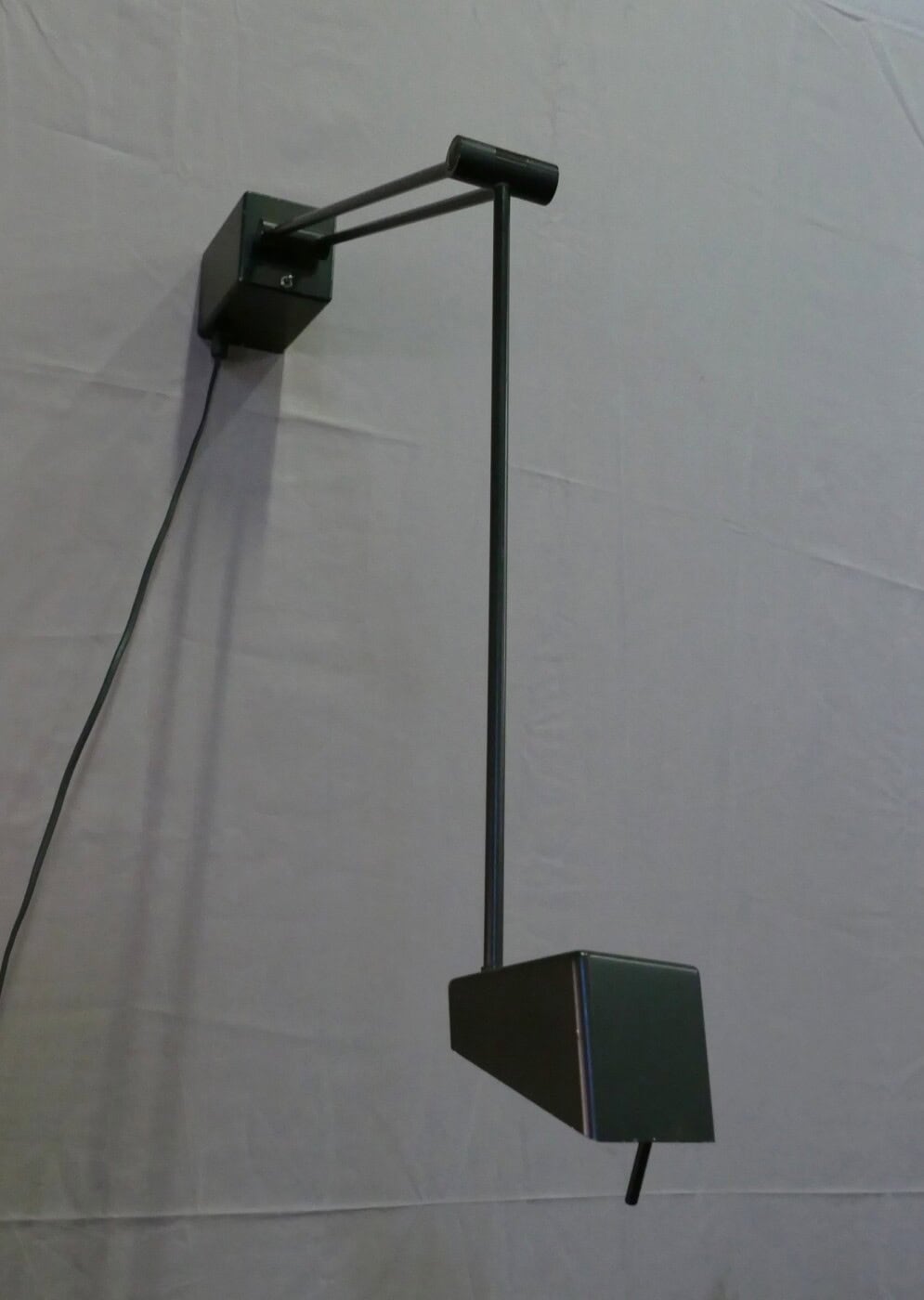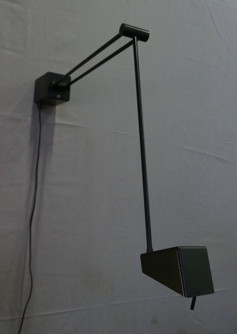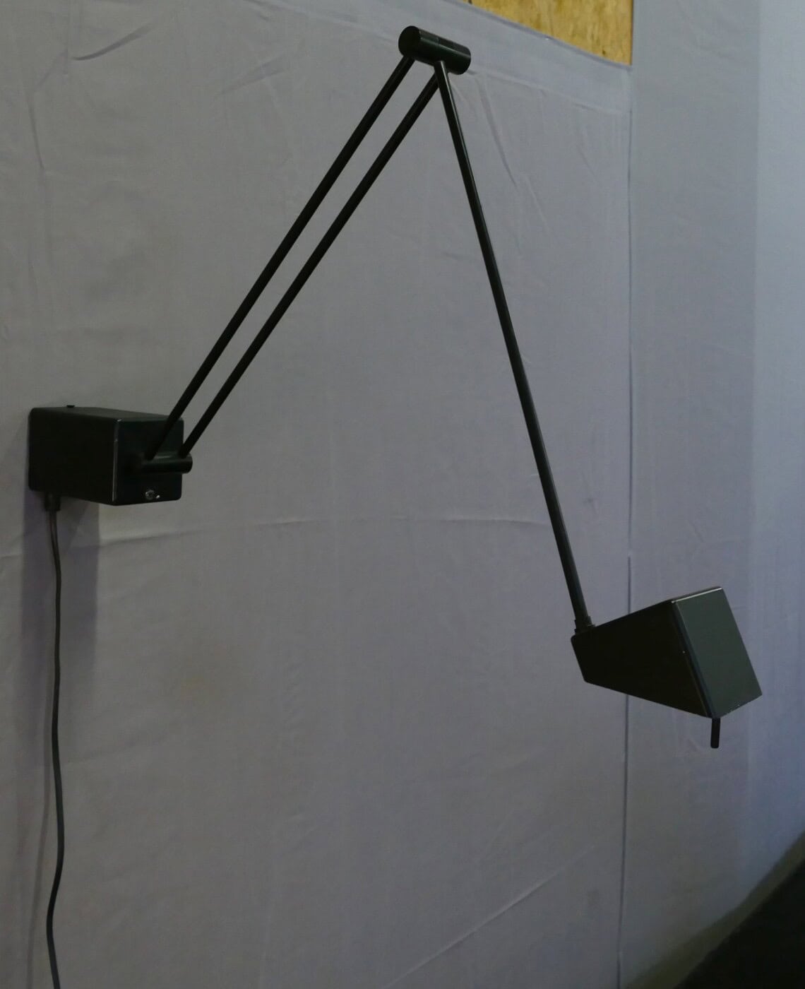 Wandlamp geproduceerd door Hala Zeist. Zwart gecoat staal in strakke geometrische vormen.
