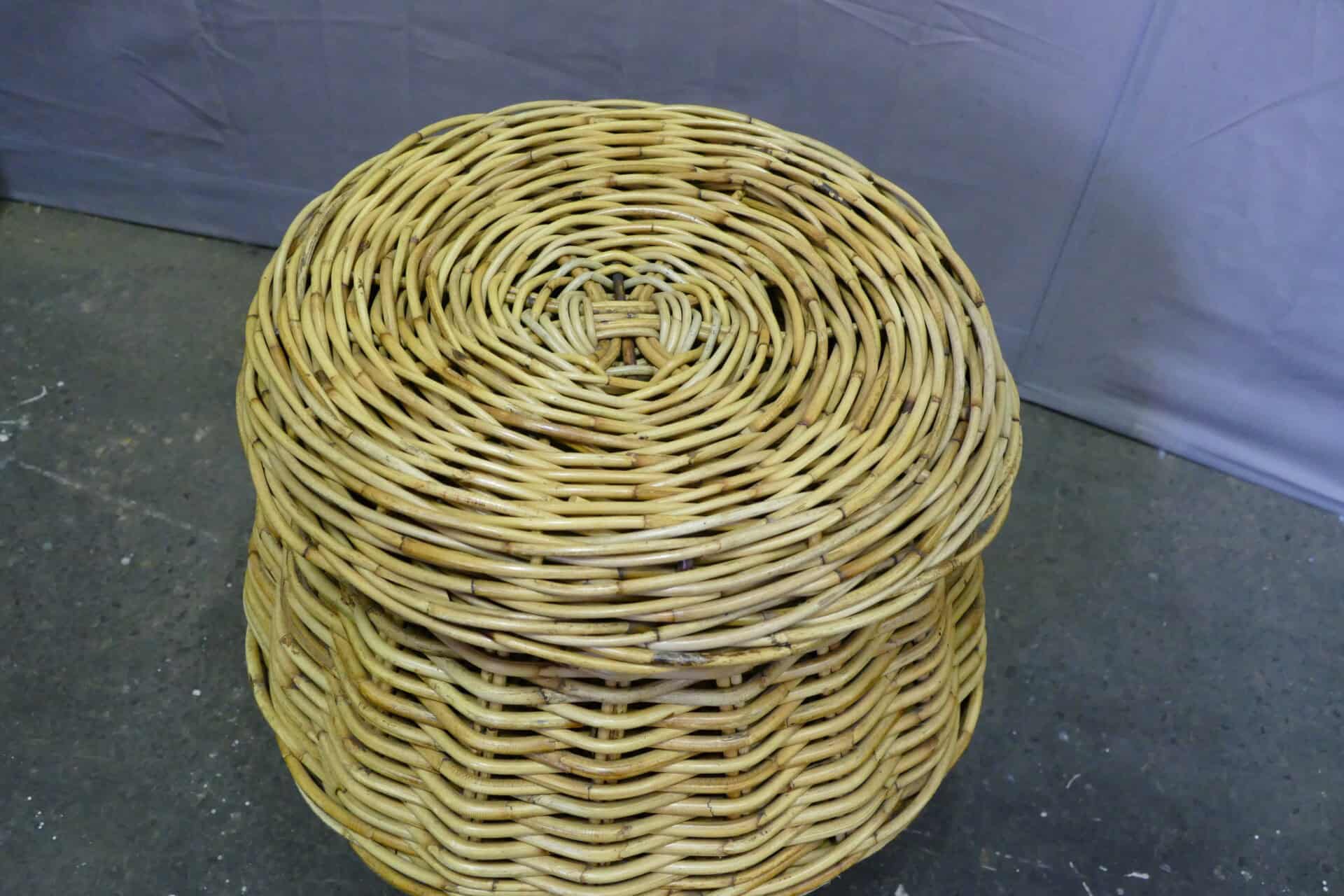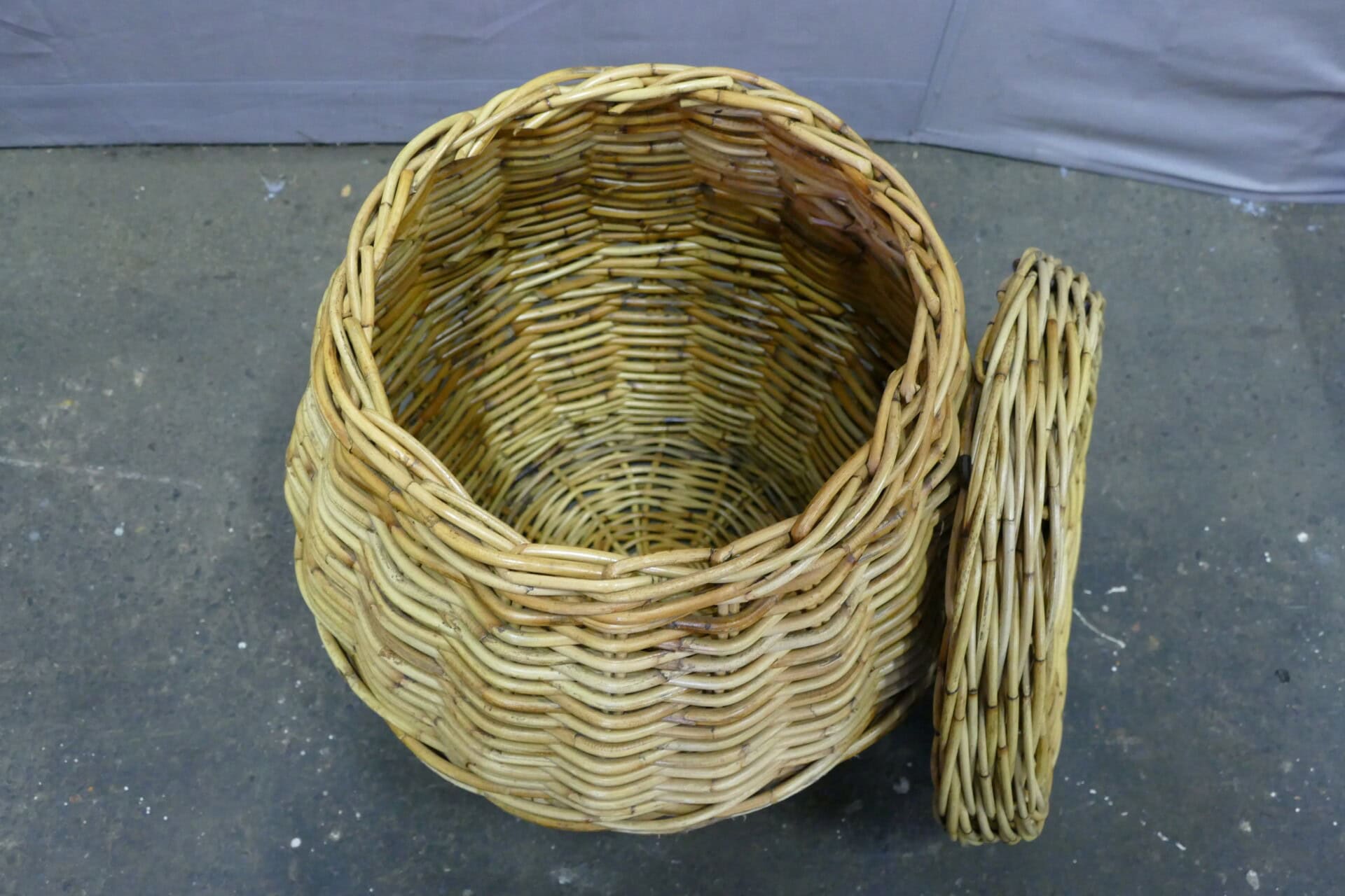 Mand gevlochten van dik pitriet in zeer goede staat. Een typisch jaren 70 item, maar nog steeds heel functioneel.