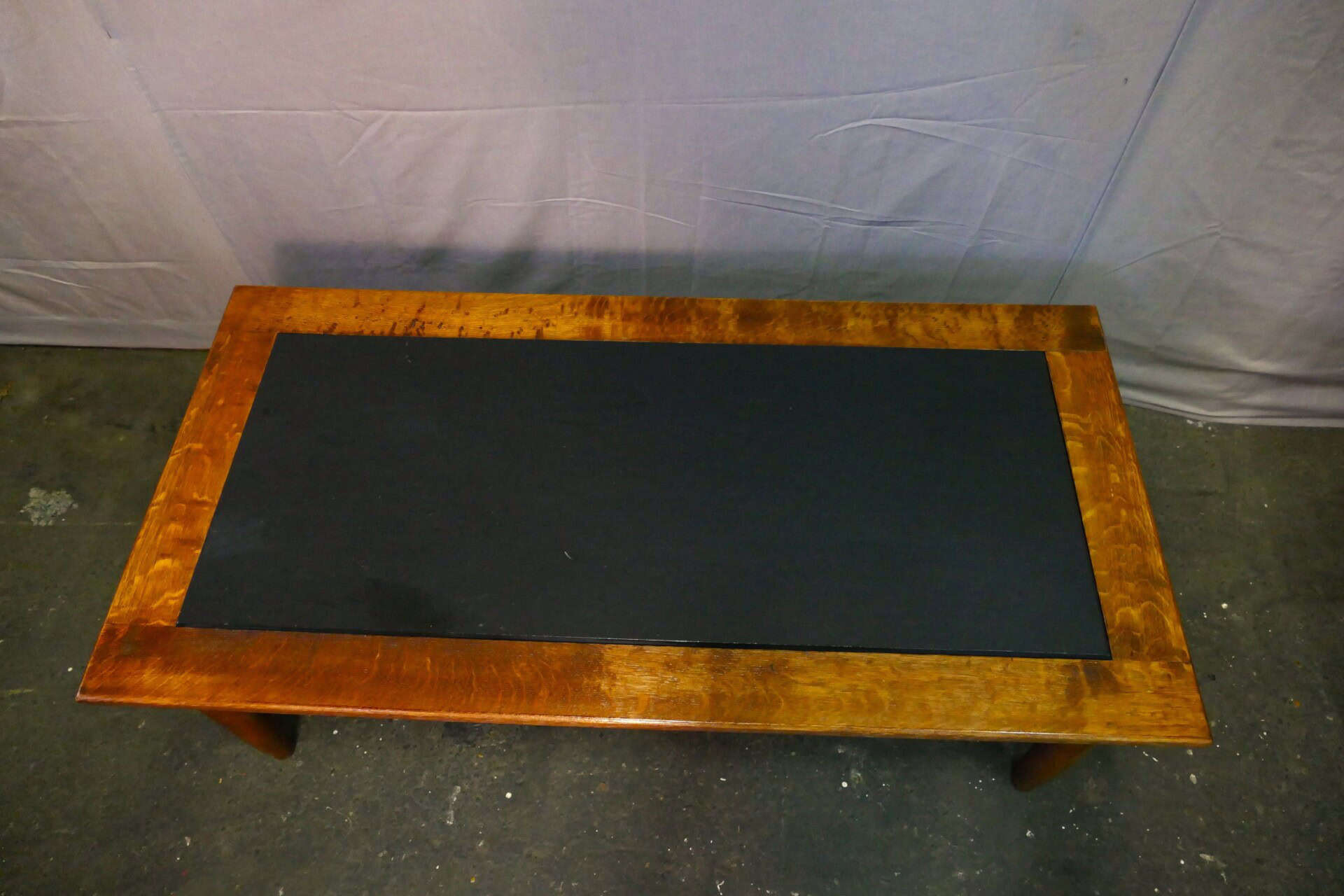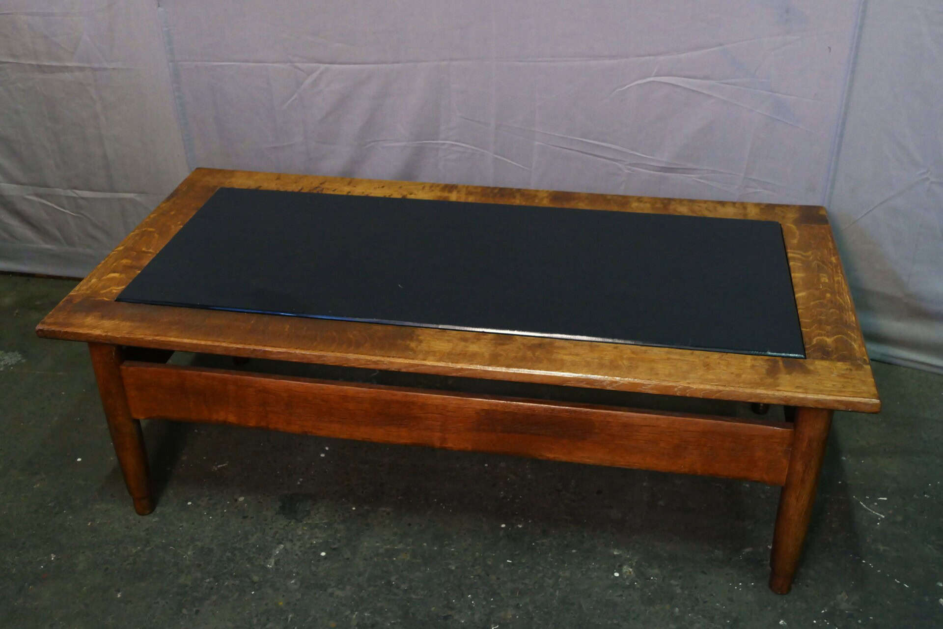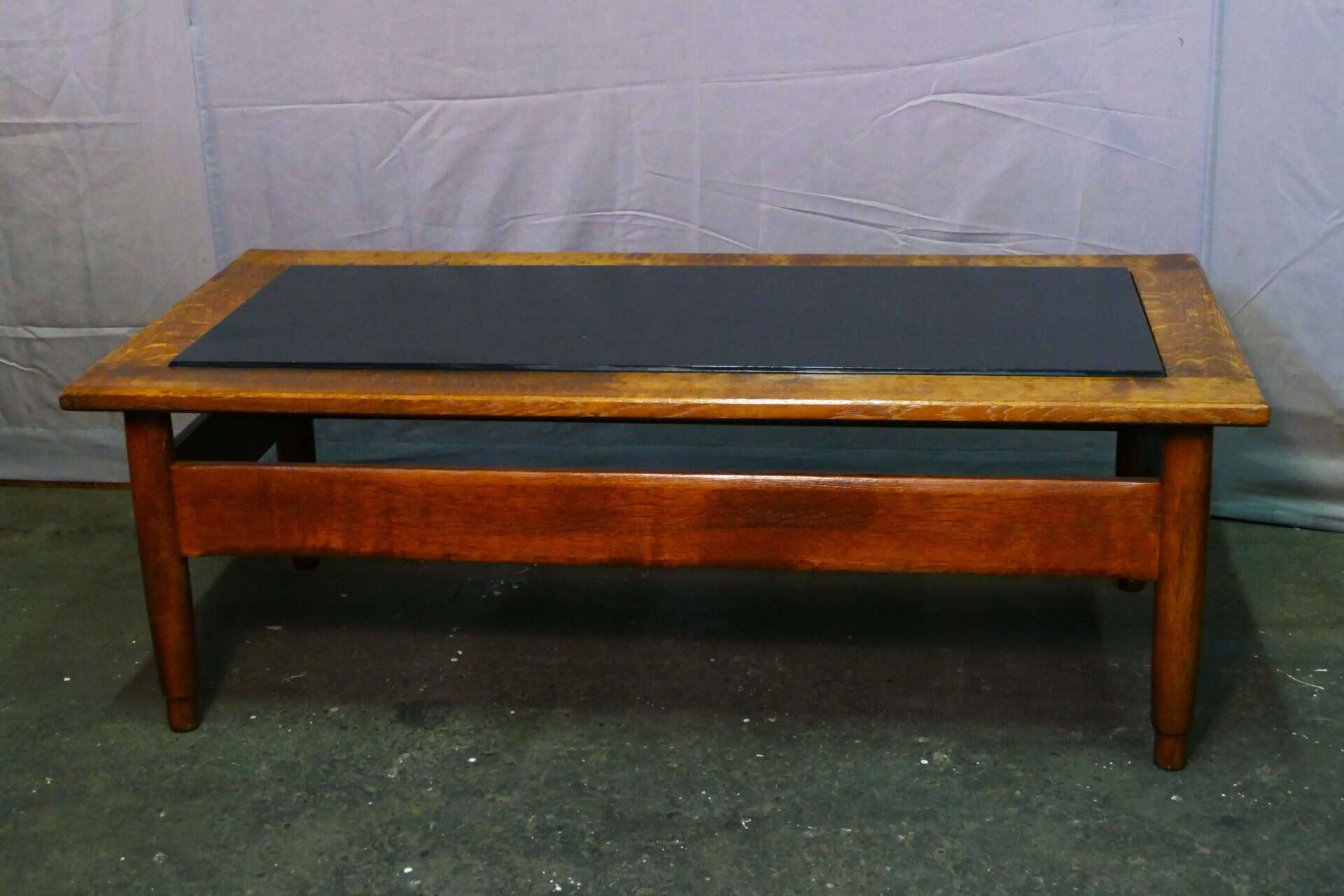 Zware eikenhouten salontafel met leistenen ingelegd blad van Topform.