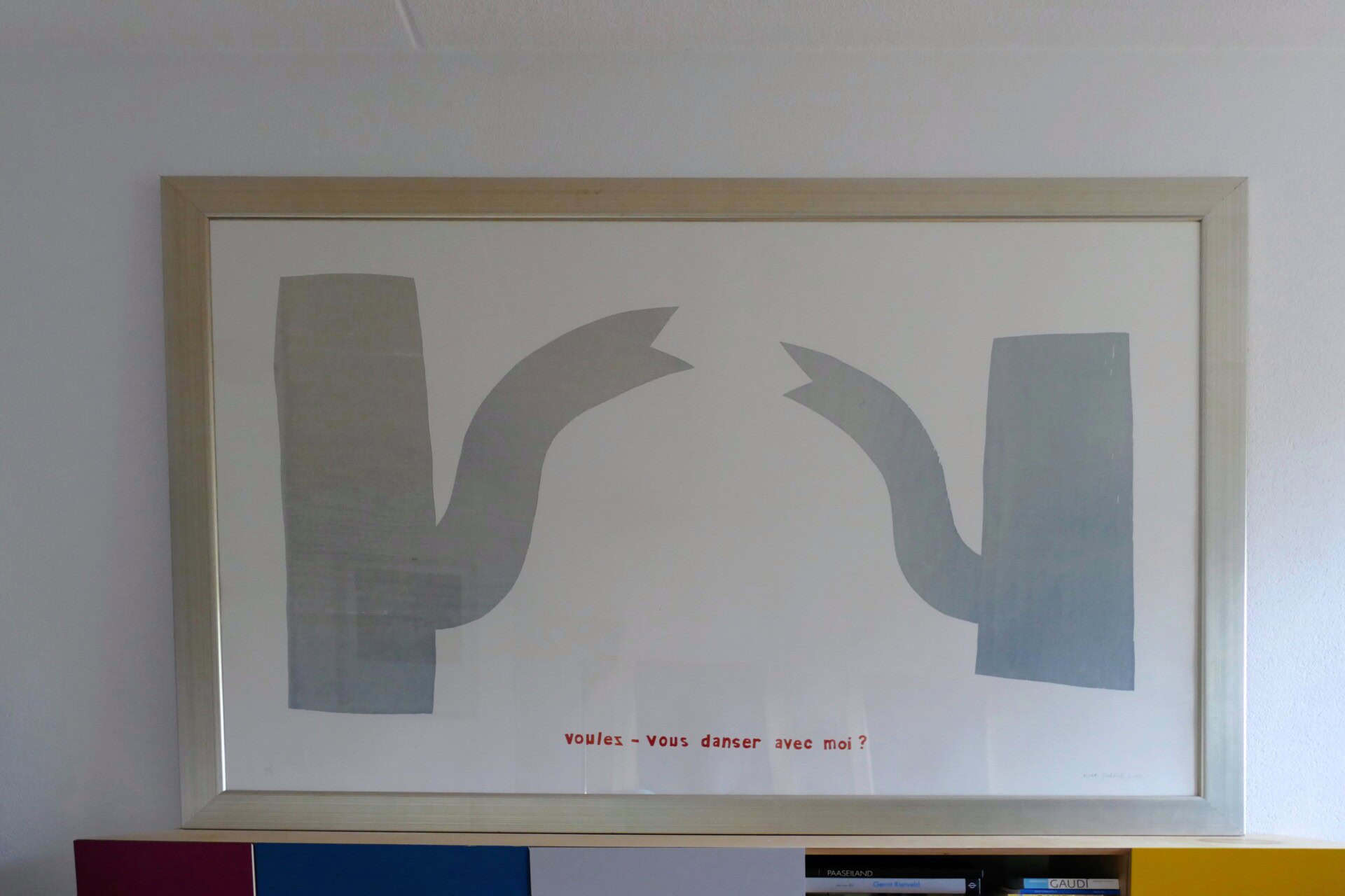Schilderij houtdruk ‘Voulez vous danser avec moi?’ door Klaas Gubbels