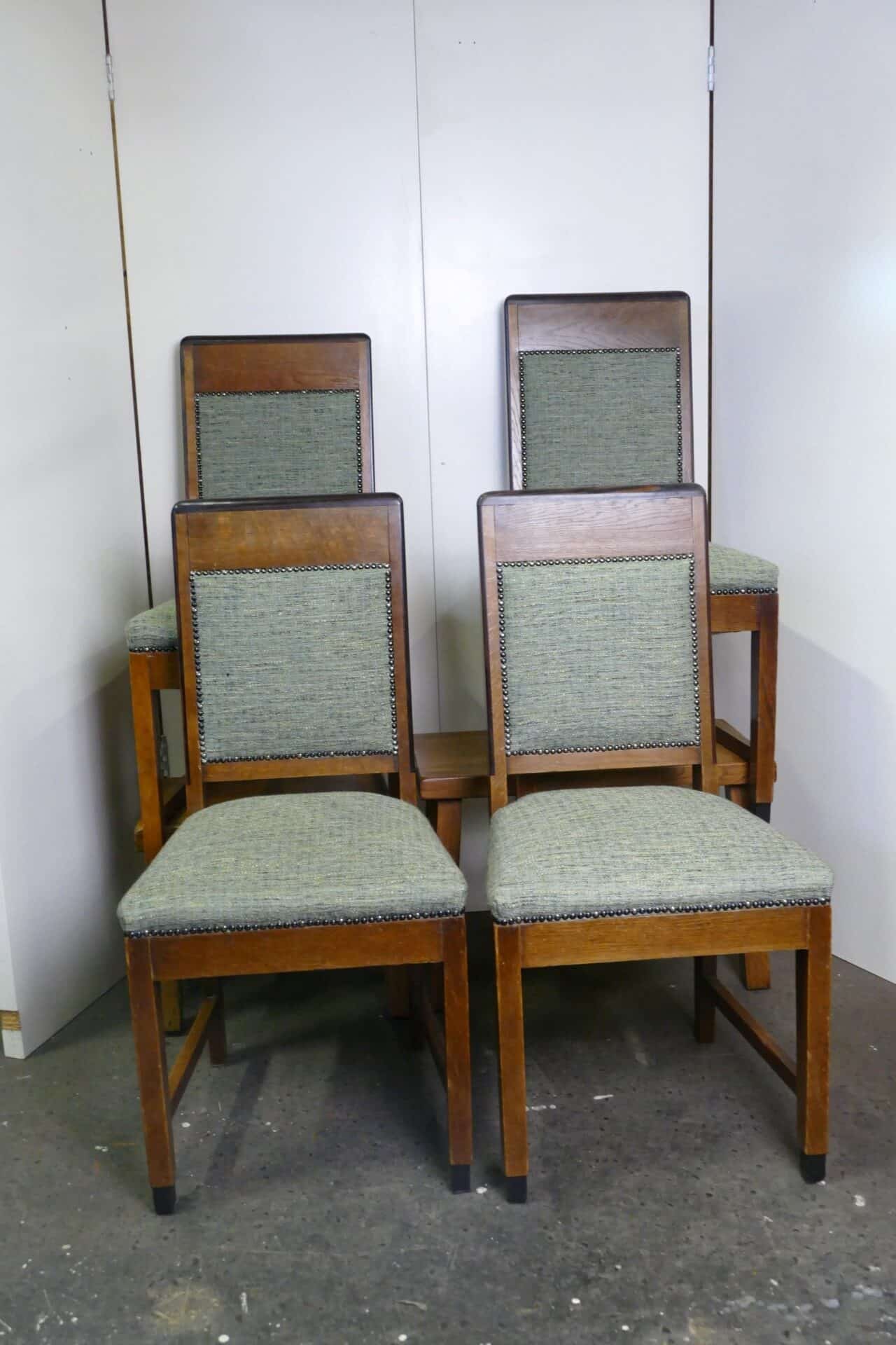Set van vier Amsterdamse School eetkamerstoelen