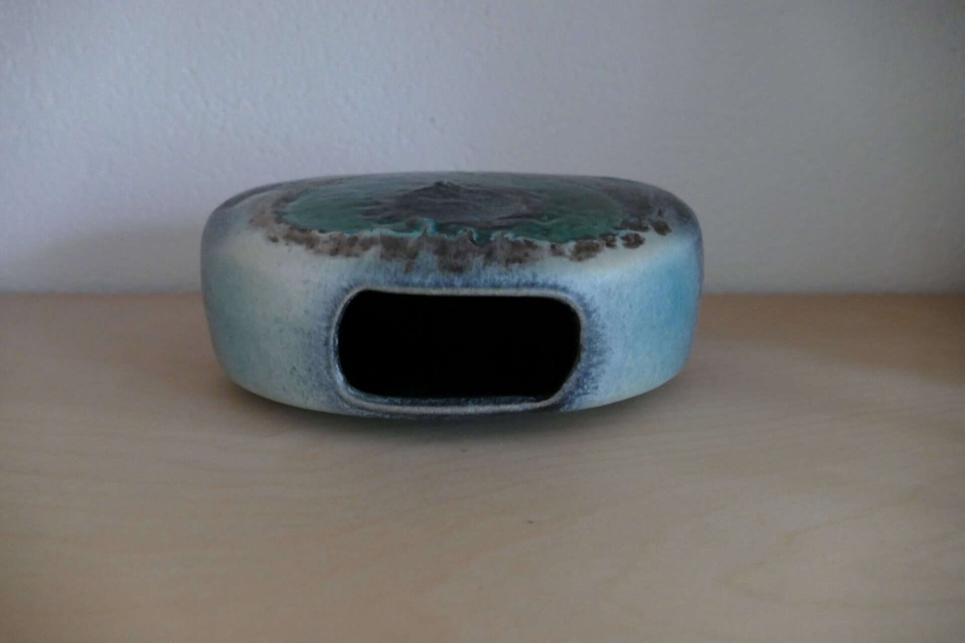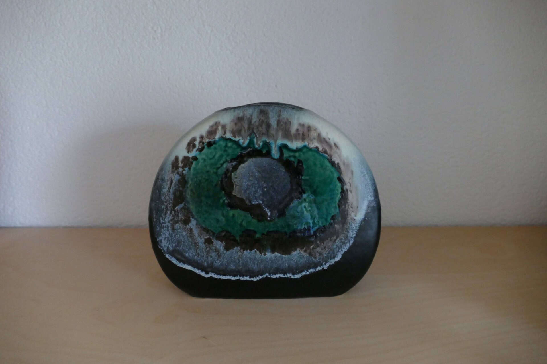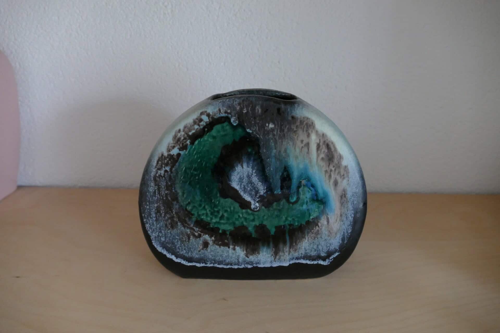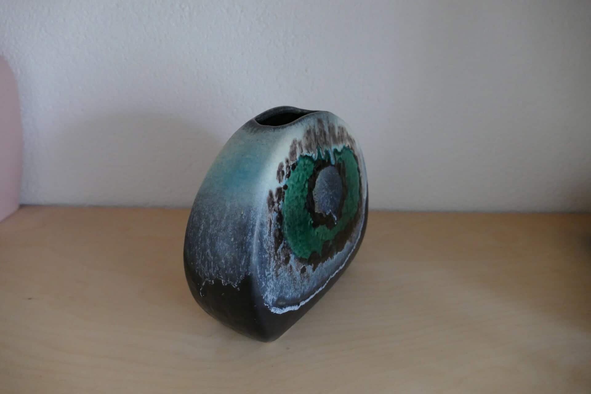Meerkleurig geglazuurde vaas van Dümler & Breiden, model reliëf 22/15. Breed18, hoog 15,5 en diep 7 cm.
